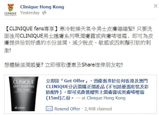 不過今朝睇facebook, Clinique 就好叻喇, 只要去佢個page到, get offer以下coupon, 選購任何一件產品, 就可以有男士試用裝15ml, 15ml可以認真試清楚, 唔係試得1次就冇個d.