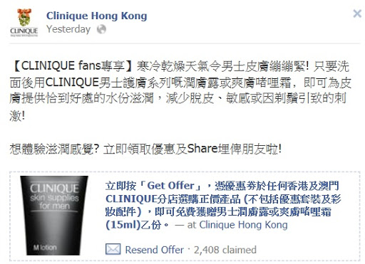 不過今朝睇facebook, Clinique 就好叻喇, 只要去佢個page到, get offer以下coupon, 選購任何一件產品, 就可以有男士試用裝15ml, 15ml可以認真試清楚, 唔係試得1次就冇個d.