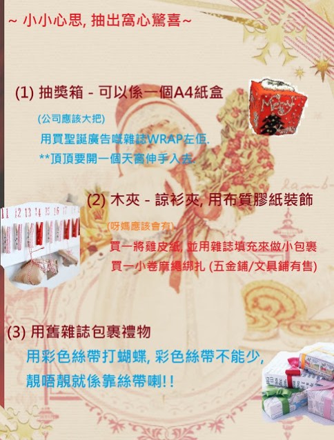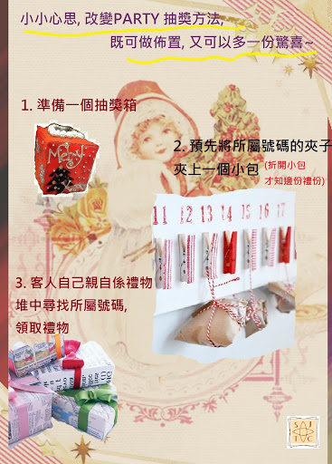 18 十二月, 20123 十月, 2013Twinkle C (HK) CHRISTMAS PARTY 入面, 你決定左抽獎方法未呀? CHRISTMAS PARTY 入面, 你決定左抽獎方法未呀? 又係玩BINGO? 又係係傳禮物? 不如花小小時間, 整D新意啦.睇落以為好難整? 其實好易, 只要你肯動手去整! 分享此文: 按一下以分享至 Facebook(在新視窗中開啟) Facebook 分享到 WhatsApp(在新視窗中開啟) WhatsApp 分享到 Pinterest(在新視窗中開啟) Pinterest 按一下即可分享至 X(在新視窗中開啟) X 喜歡 正在載入...