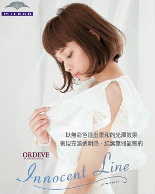 日本 Milbon INNOCENT LINE專為亞洲人而設,新色系能趕走髮質上原有的偏紅或偏黃感,以無彩色造出柔和的光澤,輕易形造出日系純潔的透明感。