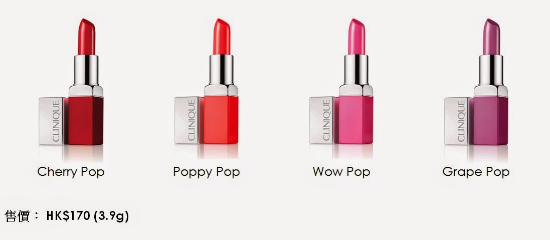CLINIQUE全新15色Pop Lip Colour + Primer耀彩柔潤唇膏於各CLINIQUE專門店及專櫃有售。