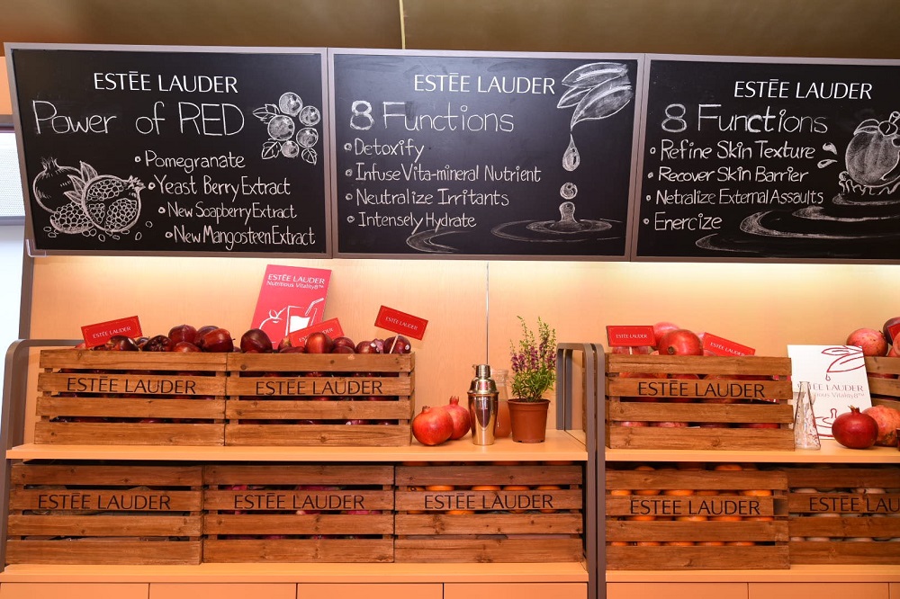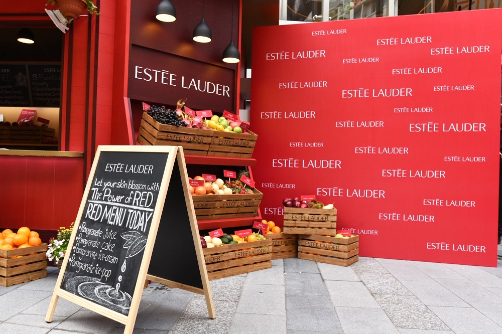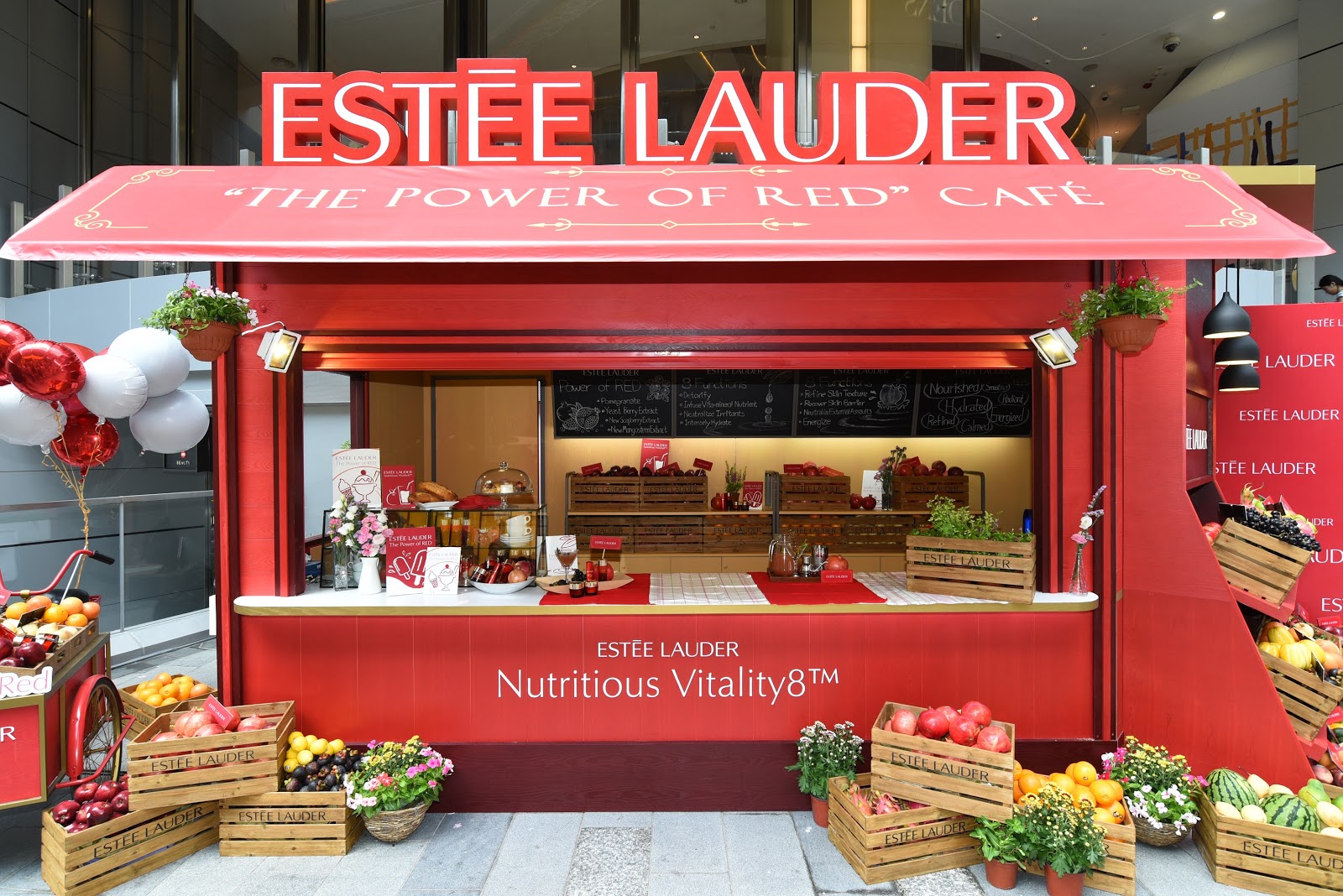 Estee Lauder “The Power of Red” Pop-up Café 現身銅鑼灣,為7月推出全新紅石榴系列Nutritious Vitality8™亮肌抗氧系列作推廣!