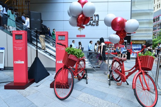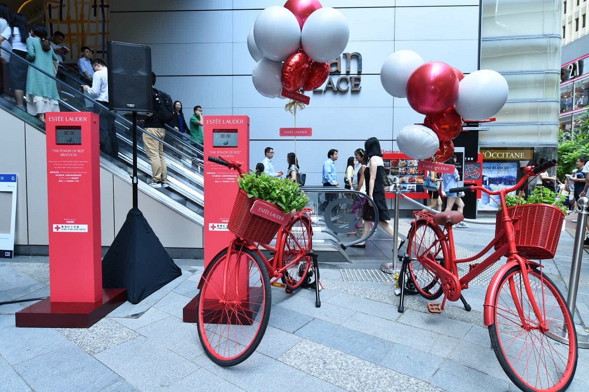 於7月15日至19日期間同場舉行 “The Power of Red Bikathon” 單車慈善活動, 大家只需於現場踏單車,即可參與籌款︰於現場每踏單車一分鐘,Estee Lauder便會捐出港幣$8予香港紅十字會,鼓勵身體力行,攜手將健康及快樂帶給社會。