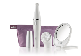 將面部脫毛器及潔面刷2合為1,是功能的增值,套裝同時附上帶燈手提鏡,方便旅行或出差時使用。脫毛器能以左、右2個方向轉動,眉毛亦能快速從根部脫除。