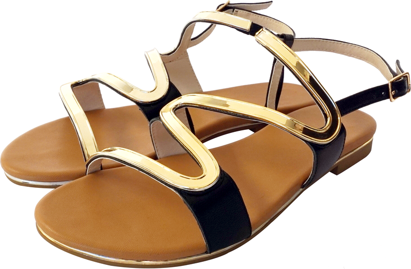 黑色真皮拼金色飾扣涼鞋 HKD 890