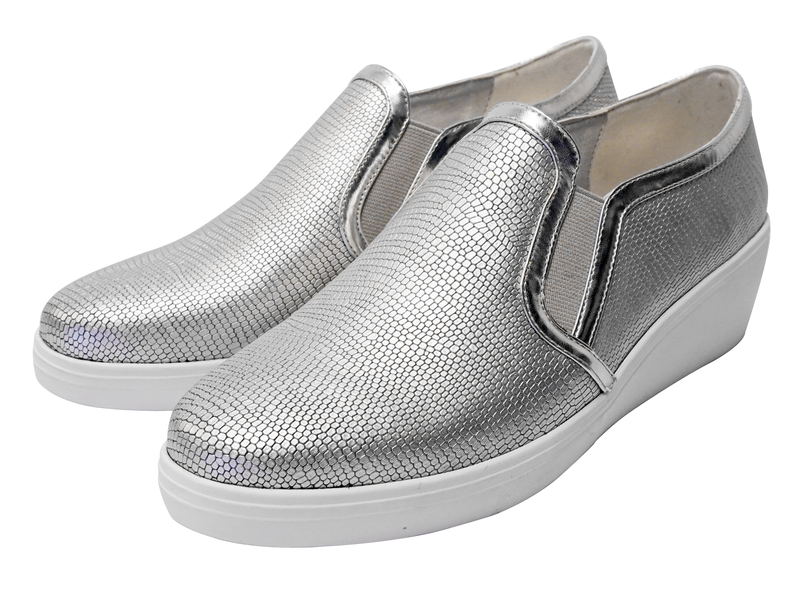 銀色真皮壓紋高踭 Slip-on HKD 990