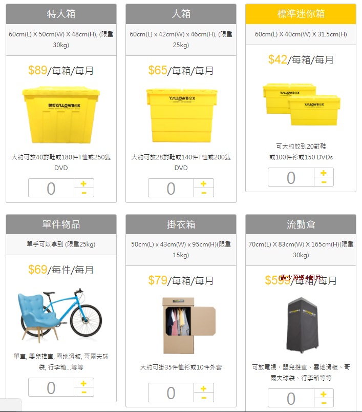 不同的物品,寄存的空間不同,一般物件,可以選用不同尺寸的迷你箱,其他雜物,亦有不同的寄存服務,大家可以先查詢收費,再安排收件。