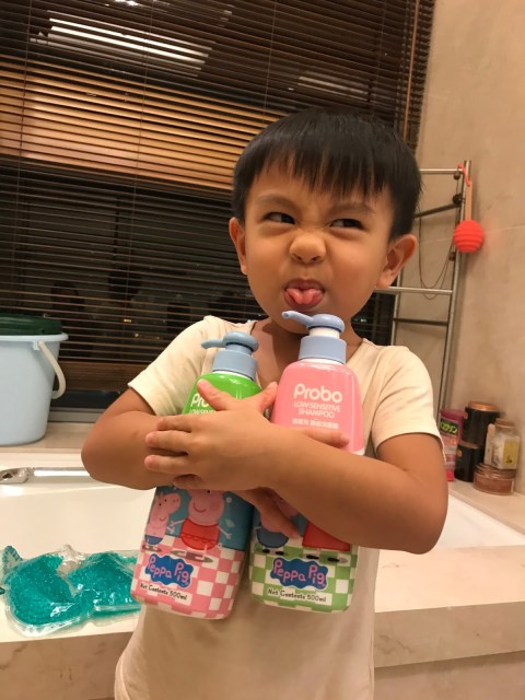 自從收到 PROBO X PEPPA PIG 個人護理產品系列,Paris 比從前主動同積極參與個人護理