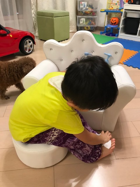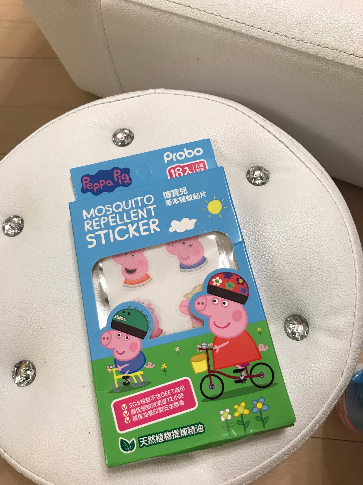 Paris 以為博寶兒草本驅蚊貼片,是貼紙,見到就不停要貼,最後經過解釋後,他才明白,什麼是驅蚊貼。