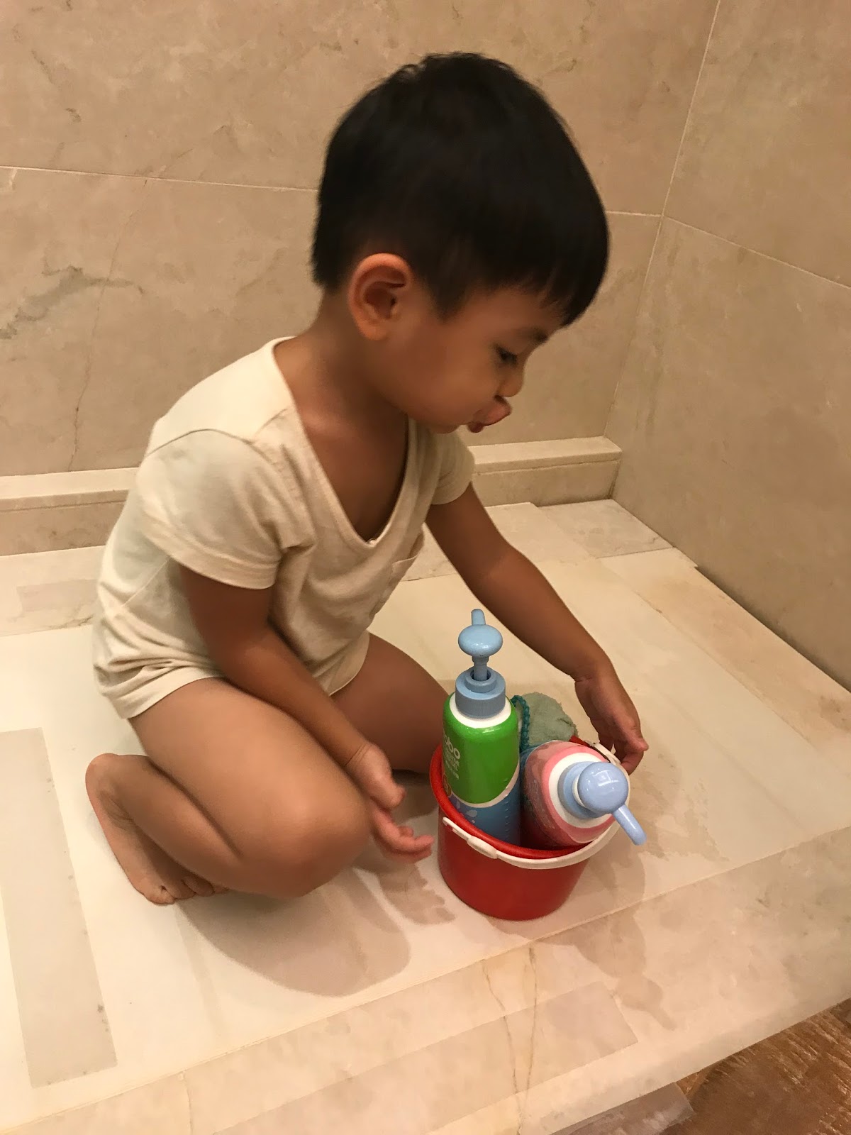Paris 話,我3歲人仔喇,要自己沖涼喇~