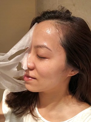 薄薄的蠶絲面膜能將精華滲透入肌膚~