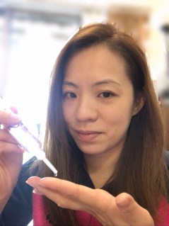塗抹時,感覺精華液好柔滑,質感輕盈,輕輕打圈已經可以吸收,即時可以撫平面上細微的乾紋,待吸收後,亦可如常化妝~