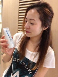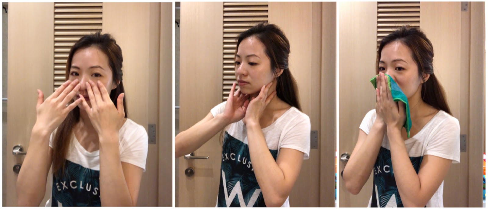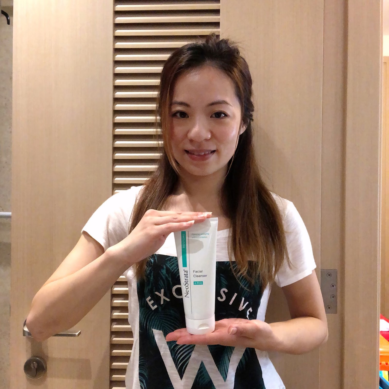 潔面時,取適量 Facial cleanser 於微濕臉和頸上按摩,可以保持頸部肌膚年輕~