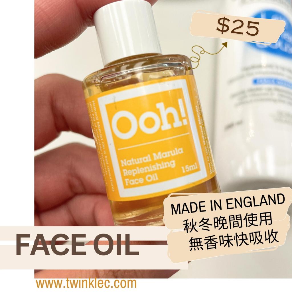 OOh! 面部護膚由英國製造,質地清爽,面部皮膚快速吸收,適合香港天氣使用
